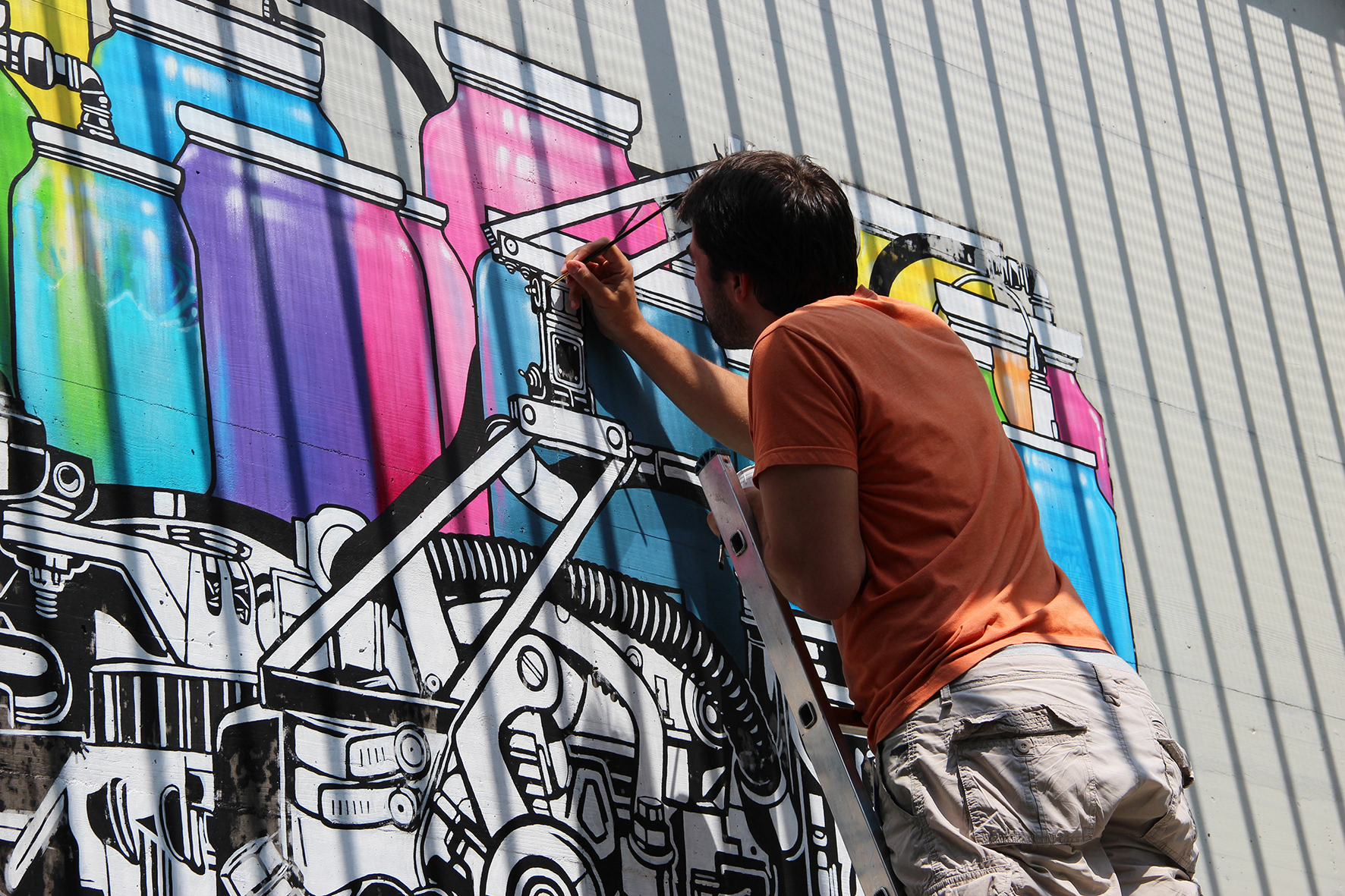 “4661m2 - Art in prison” - Series of mural paintings realized inside the Lenzburg prison (CH), on the borders walls and into a walking area, 2013. The project was curated by Malik and Claude “Note” Luethi, and involved many artists: Malik, Note, Onur, Chromeo, Shark, Ata Bozaci, Robert Proch, Nevercrew, Mizzo, Daniel Zeltner, David Monllor, Benjamin Solt, Lain, Ti, Sarah Parsons.