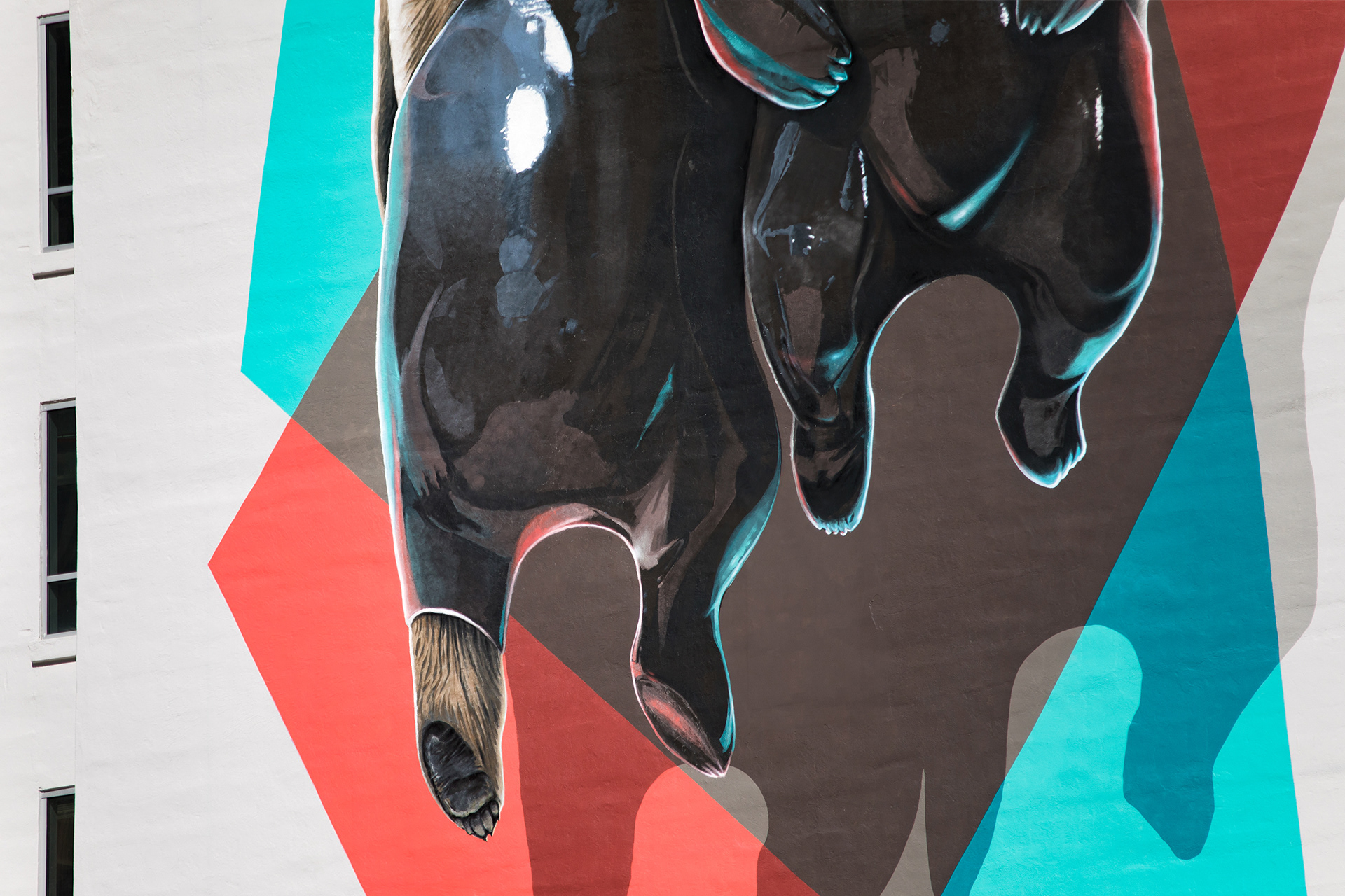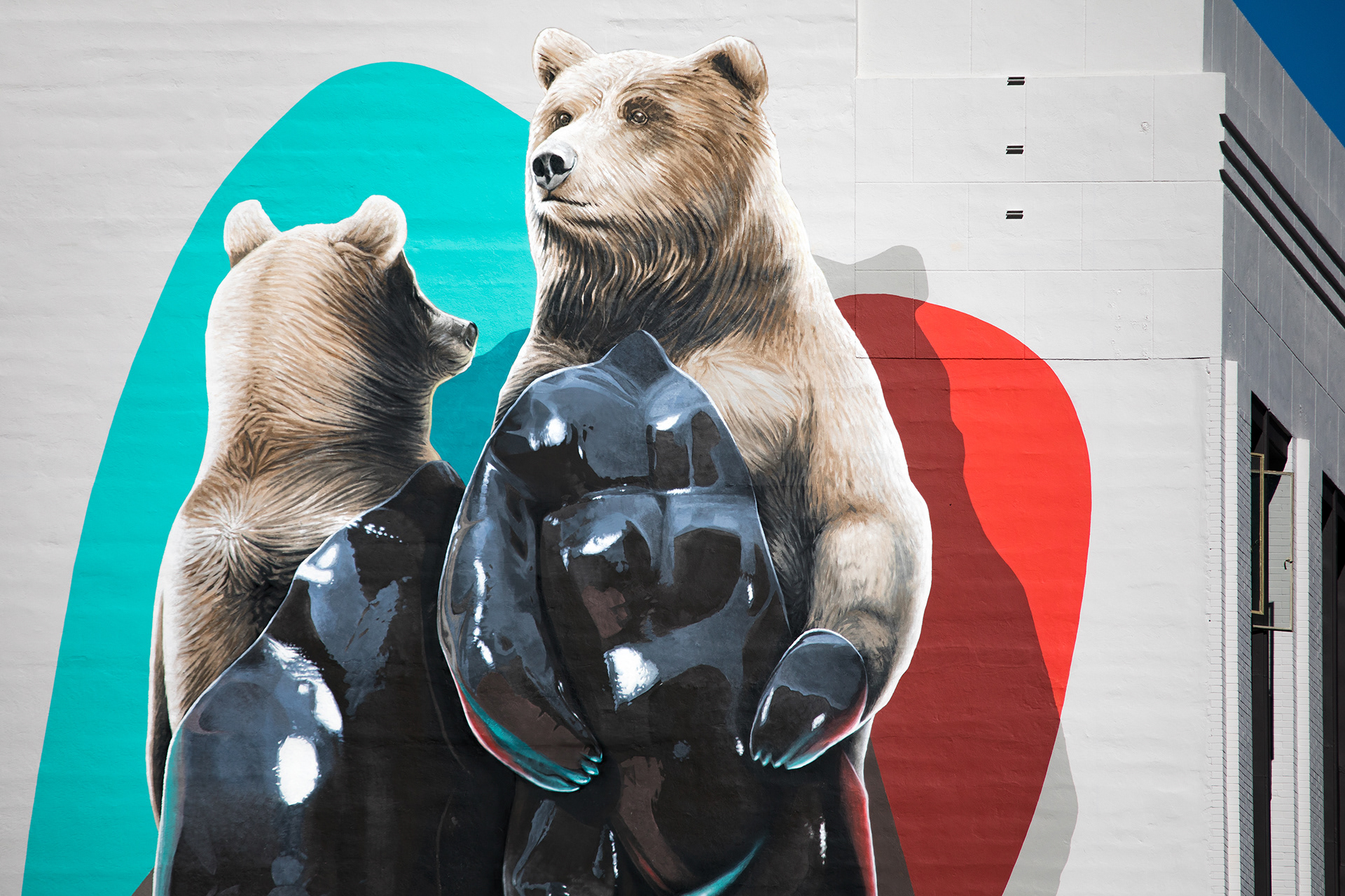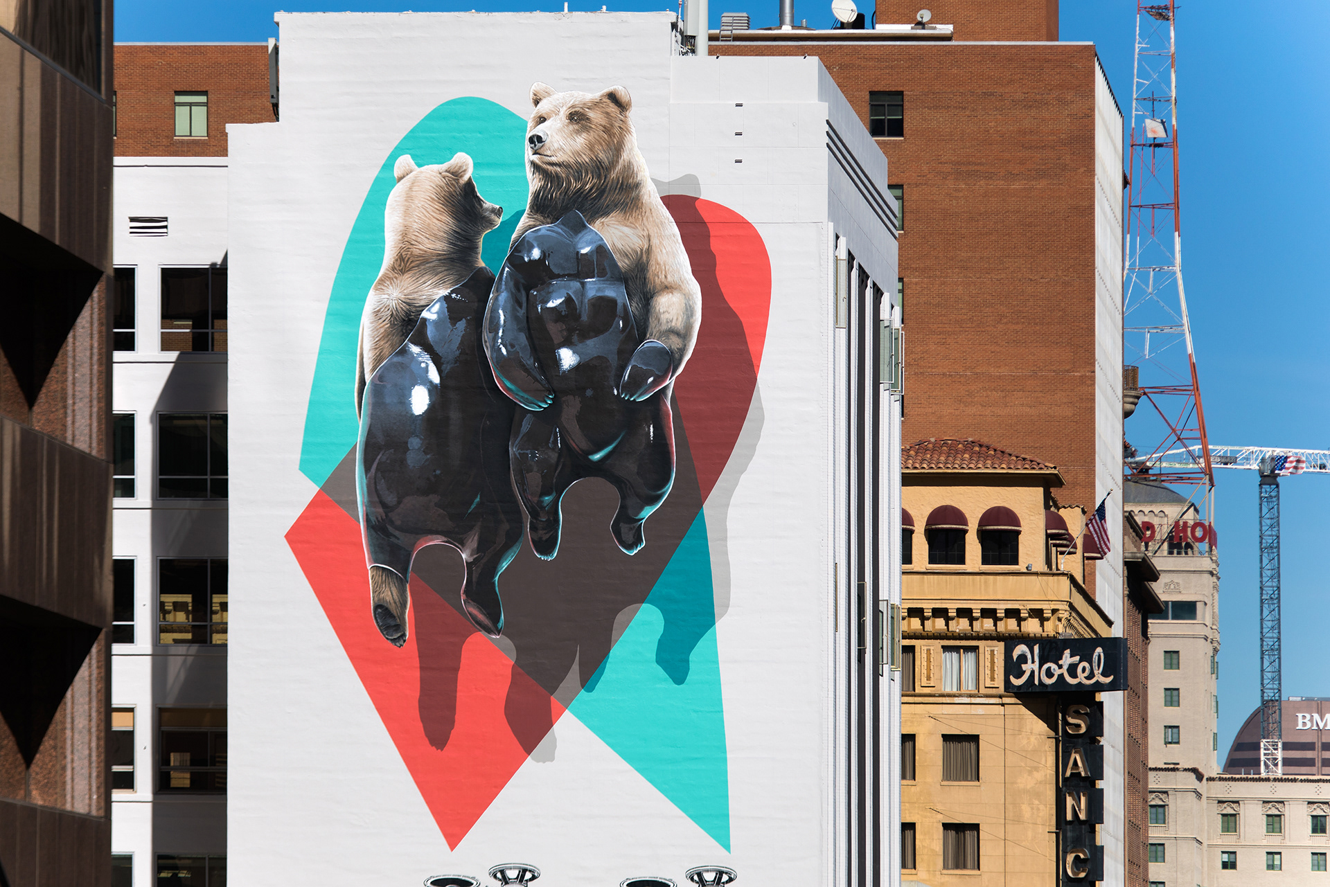 This intervention is about communication and about how communication becomes tangible when used to interact, connect, change, and especially understand and remember, to take awareness of what we are, what we did and what we’re doing. Inspired by the history of the Heard Building (on and in which the murals are realized), where in the past were hosted a radio station and two newsrooms, and by the Mexican Grizzly (Ursus arctos nelsoni), a bear that used to inhabit Arizona and that’s now considered extinct, the concept then starts from what disappeared but’s still part of our culture and knowledge.