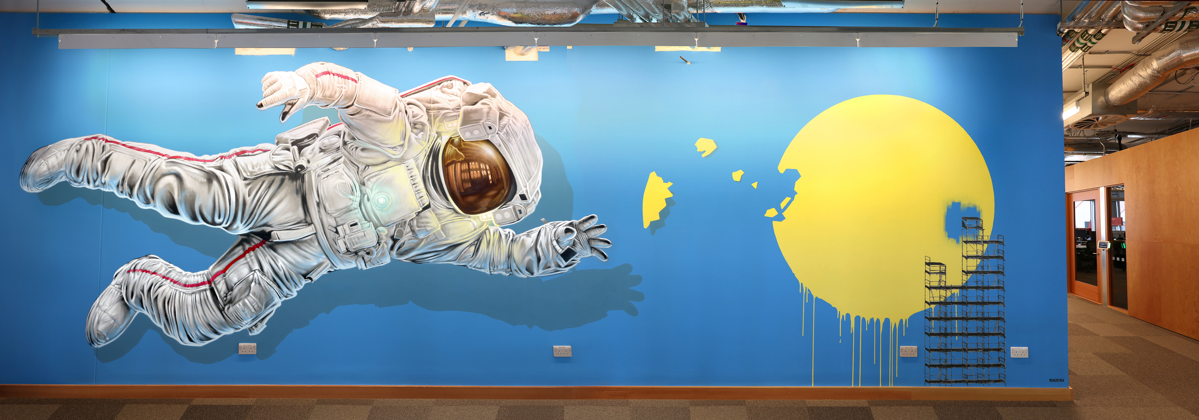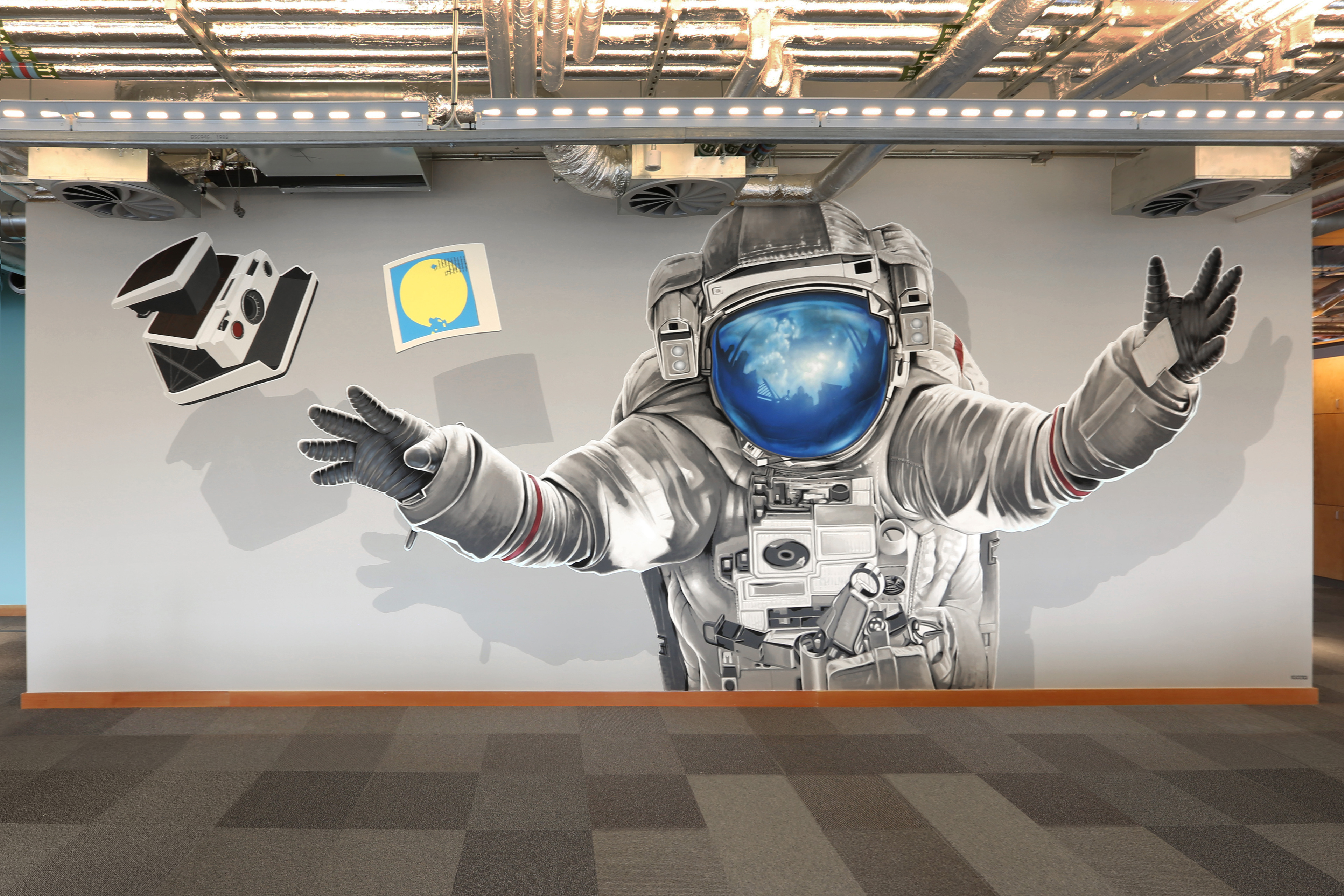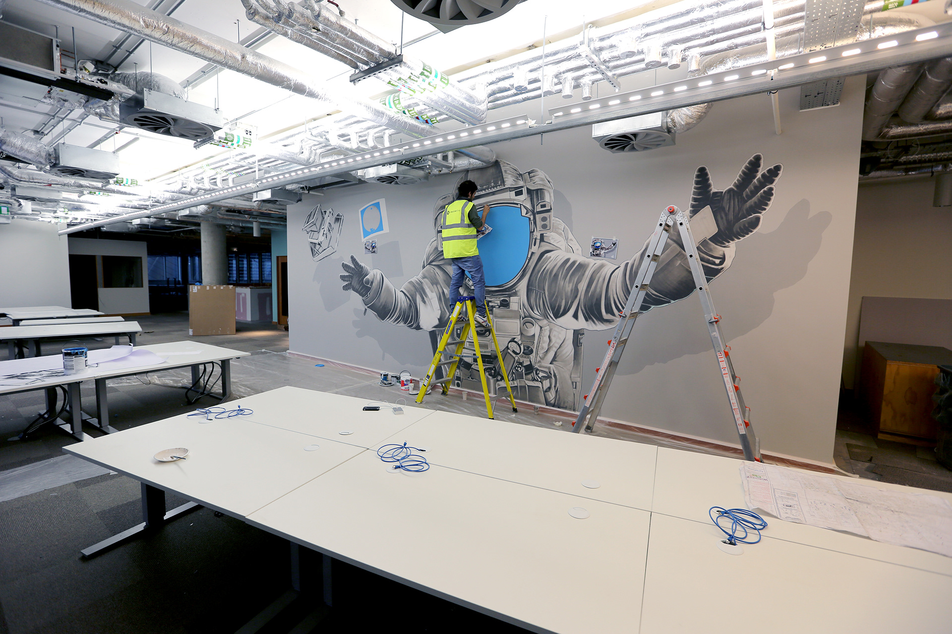 "Explorer idea n°1 and n°2" - Indoor mural artworks for the new Facebook spaces in Dublin (IRE). Two of six from the main series "Brain-storming Machine n°1", 2014.