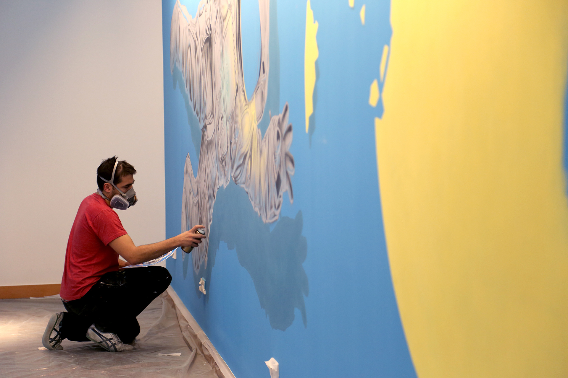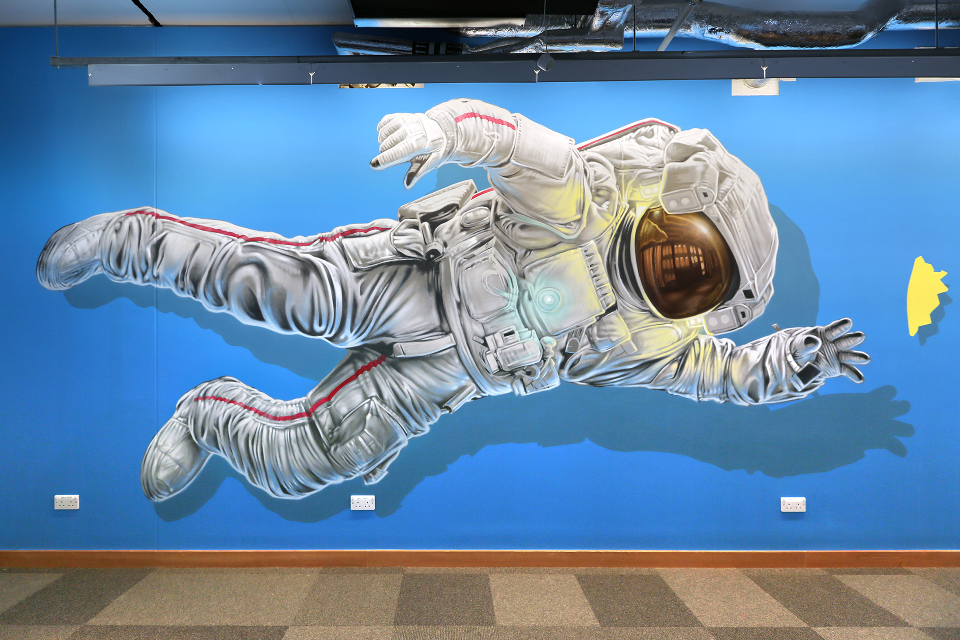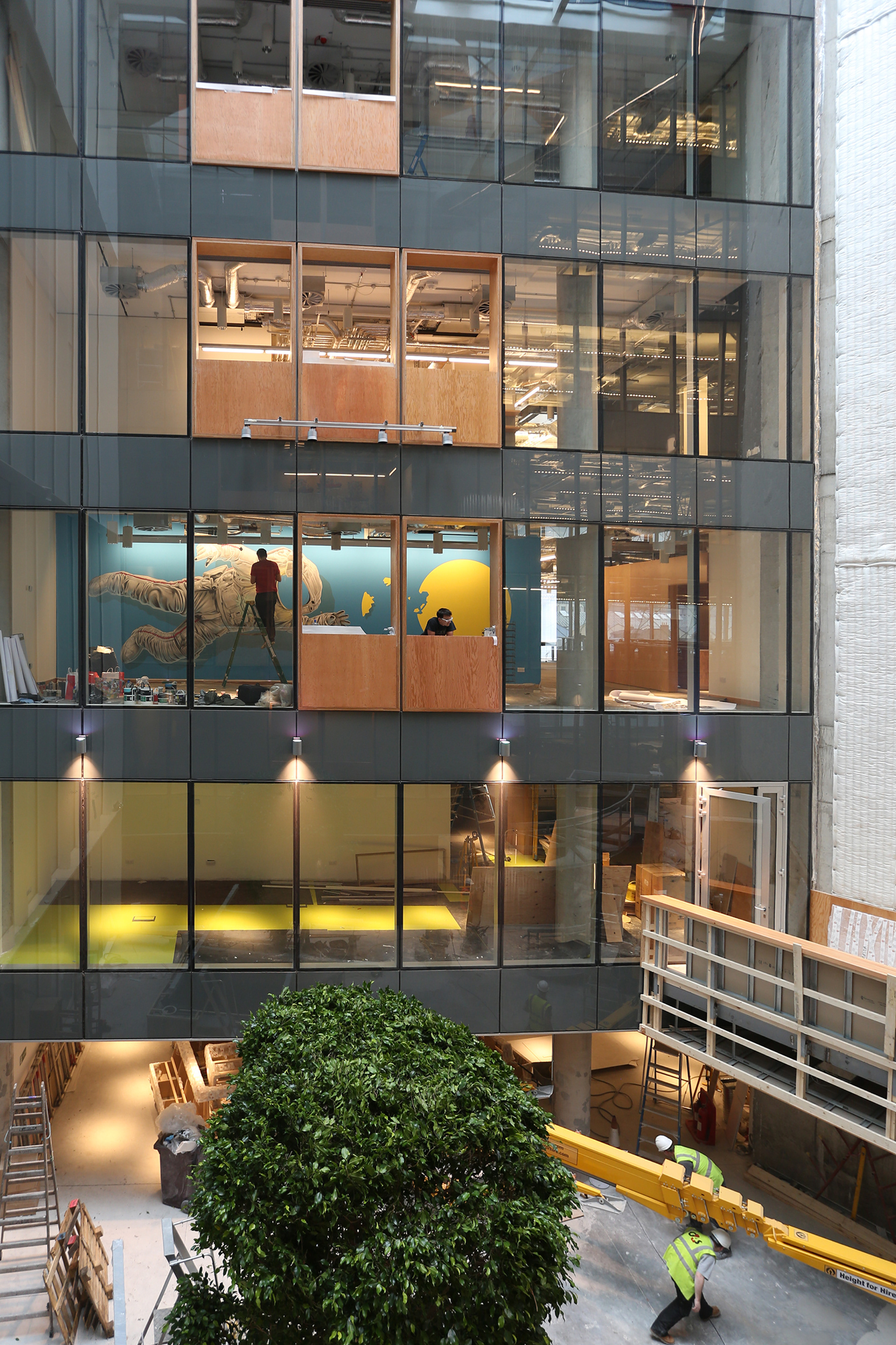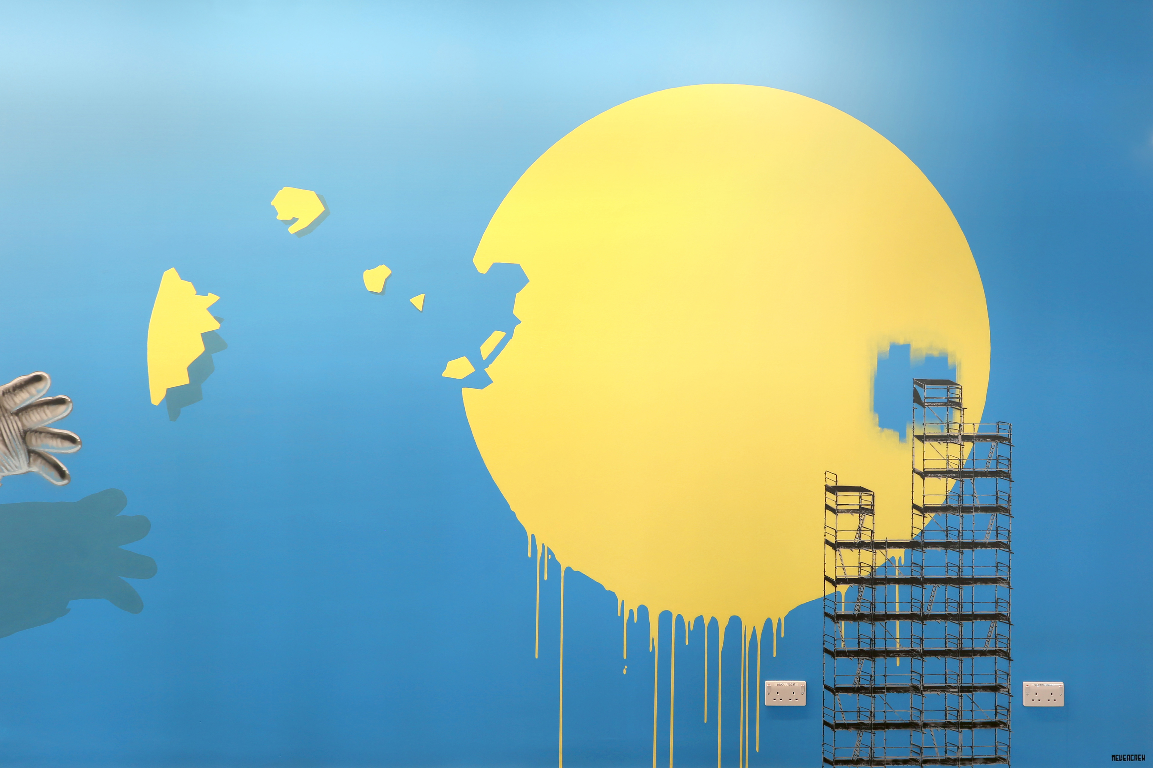 "Explorer idea n°1 and n°2" - Indoor mural artworks for the new Facebook spaces in Dublin (IRE). Two of six from the main series "Brain-storming Machine n°1", 2014.