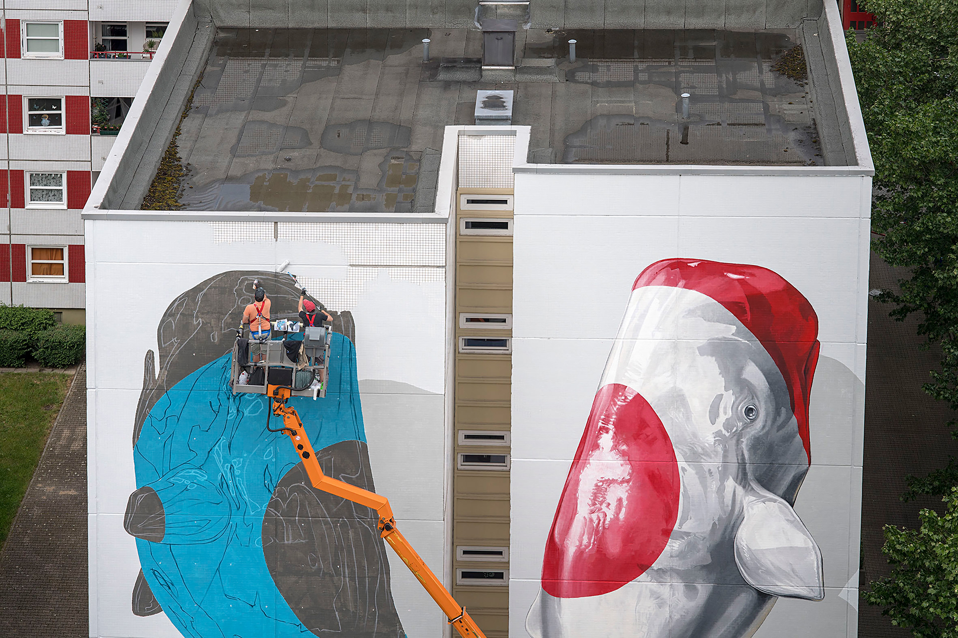 This work takes direct inspiration from the architectonical structure on which it’s located and it’s inserted in the “Unity” concept proposed by Urban Nation for its curatorial project.